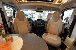 Inkommer omkring: 2026-03-05, Hjuldrift: Framhjulsdrift, Airbag förare & passagerare, Mörkläggningsgardiner (Remis), Vinterisolerad avloppstank, Klädsel: Platinum part lether / Expedition grey, Chassi-plus-paket f40/f35 tillsammans automatisk, Förassistans- och infotainmentpaket, Fiat semi-integrated driver assistance package, Charming coupé/GT skyview extra standard equipment (for f40/f35 in conjunction with automatic transmission), 8G-hydraulisk automatväxel, Fiat full-LED-strålkastare, Utvändig färg expedition grey, LED-ytterbelysning inkl. dropplist, Eluttagspaket: 3x USB-uttag/2x 230 V-uttag, Truma Duo Control CS med krocksensor och automatisk omkoppling, Truma Combi 6 E (gasol-/eldrift), Gasfilter för Truma Duo Control CS (rekommenderas, endast tillsammans med Truma Duo Control CS), PREMIUMFÖNSTER i badrummet, förar-/passagerarsida vardera 2x, Designvärld lucca: Möbeldekor med ljust modern valnöt med handtagslösa överskåp med eleganta mattgråa kontraste, Borttagbar textilmatta i förarhytten, Bil förväntas ankomma under våren 2026, OBS bilder skiljer sig mot ankommande bil