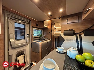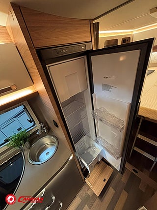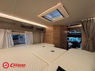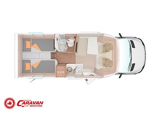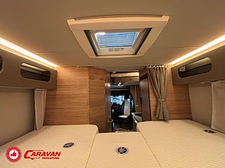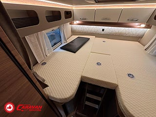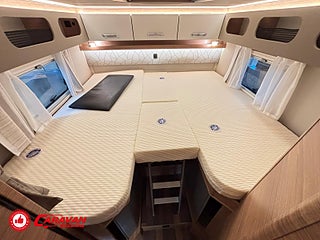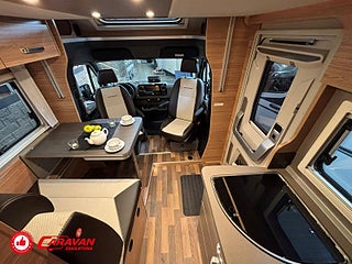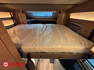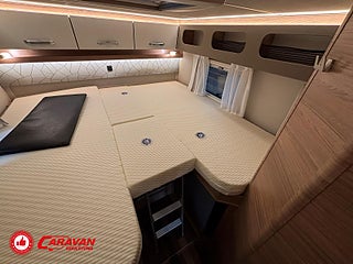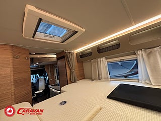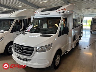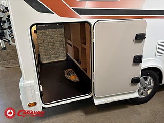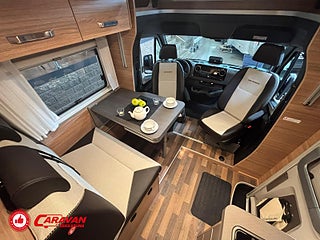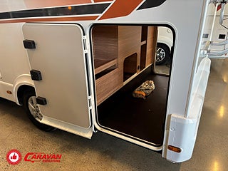 Modellår: 2025, Motor: Mercedes Benz 317 CDI, Karosstyp: Halvintegrerad med taksäng, Värmesystem: Truma - luftburen fläktvärme, Klädsel: Malabar - grå textil, Försäkring: ca 6 500 kr/år, Instrumentpanel med silverdekor, Truma - luftburen fläktvärme, Klimatanläggning - bildel, Taksäng ovanför sittgrupp - manuell, Extra bäddyna mellan långbäddar, Fönster med mörkläggning/myggnät, Färskvattentank - frysskyddad, Spillvattentank - frysskyddad, Multimediaspelare med Backkamera och Navigation, Bluetooth-anslutning till högtalare, Lastluckor - dubbla till garage, Lastutrymme - stort garage, Täthetsgaranti - från tillverkare, 10-års täthetsgaranti