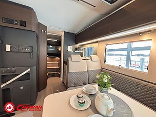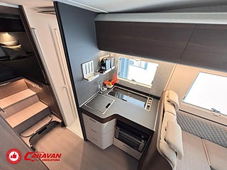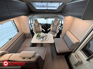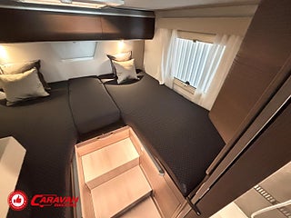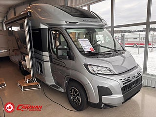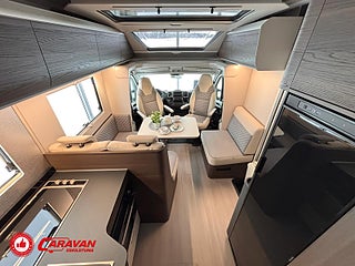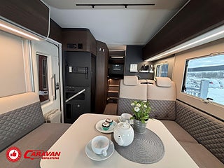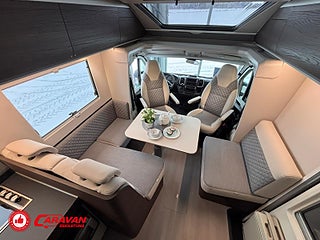 Modellår: 2025, Motor: Fiat Ducato 140 MultiJet III, Karosstyp: Halvintegrerad, Värmesystem: ALDE - vattenburen centralvärme, Klädsel: Elanor - Grå/beige halvskinn, Försäkring: ca 7 000 kr/år, Centrallås bil- och bodelsdörrar, Instrumentpanel med silverdekor, ALDE - vattenburen centralvärme, Klimatanläggning - bildel, Värmeelement i hygienutrymmet, Krocksensor för gasol under färd, Extra bältesplats i sidosoffa, App-styrning (huvudpanel), Eluttag för TV-antenn/12V/230V - utvändigt, Extra bäddyna mellan långbäddar, Fönster med mörkläggning/myggnät, Färskvattentank - frysskyddad, Spillvattentank - frysskyddad, Punkteringsset - Fix n Go, Lastluckor - dubbla till garage, Lastutrymme - stort garage, Täthetsgaranti - från tillverkare, 7-års täthetsgaranti