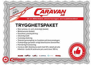 Alltid ett tryggt köp hos Caravan AB i Eskilstuna, vid köp av denna husbil ingår vårt Trygghetspaket: