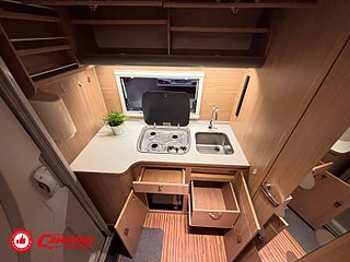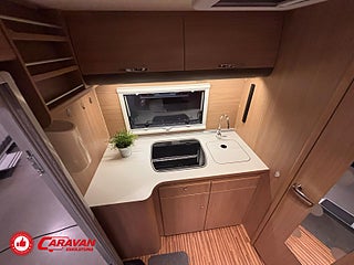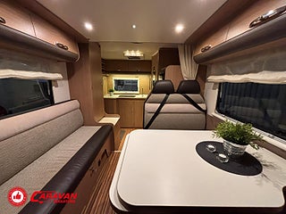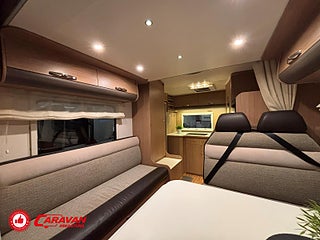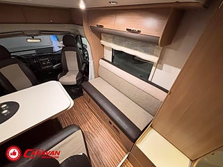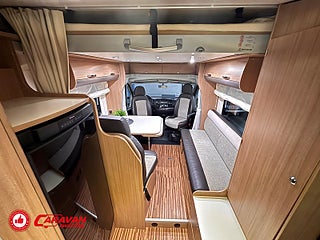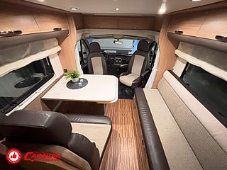 Modellår: 2013, Karosstyp: Halvintegrerad, Värmesystem: Truma - luftburen fläktvärme, Klädsel: Halvskinn - Beige/Svart, Försäkring: ca 6 000 kr/år, Truma - luftburen fläktvärme, Klimatanläggning - bildel, Krocksensor för gasol under färd, Taksäng ovanför sittgrupp - elektrisk, Fönster med mörkläggning/myggnät, Färskvattentank - frysskyddad, Solpanel