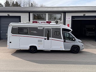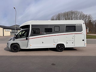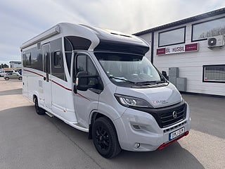 ACC(digital klimatanläggning), Elspeglar(även uppvärmda), Cykelställ(höj-och sänkbart), Solcell 170 W på tak, Remis kassett-gardiner i förarhytt, Kingsizebed bak 160 cm bred, Nedbäddbar Sittgrupp (totalt 4 bäddar), 3 lågig spis med automattändning, Högt placerad stor kyl med frysfack, Gasolugn, Garage med dubbla lastluckor, Truma-värme med integrerad varmvattenberedare, Skyroof takfönster ovan förarhytt, Utvändigt eluttag 230V/12V, Automatiskt gasolomkoppling med crashsensor och fjärrindikering, 7057, Totalvikt: 3650 kg (vanligt B-körkort taget före 07/2006 ), Nyskick, Fukttestad utan anmärkning, OBS! Tidsbokning för visning av fordon