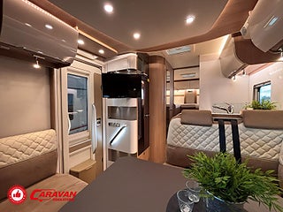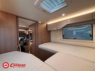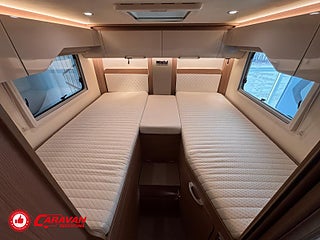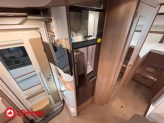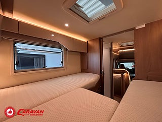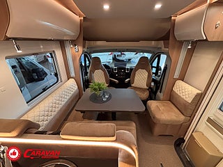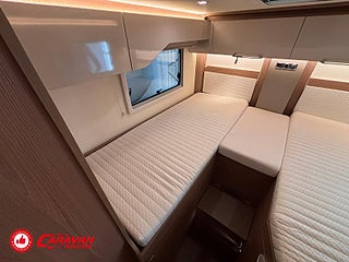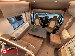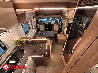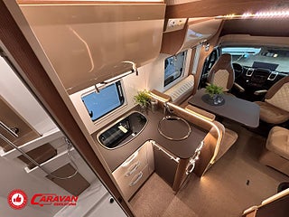 Modellår: 2019, Karosstyp: Halvintegrerad, Värmesystem: ALDE - vattenburen centralvärme, Klädsel: Halvskinn - Brunt/Beige, Försäkring: ca 6 500 kr/år, Centrallås bil- och bodelsdörrar, Instrumentpanel med silverdekor, ALDE - vattenburen centralvärme, Golvvärme - uppvärmt dubbelgolv, Klimatanläggning - bildel, Taksäng ovanför sittgrupp - elektrisk, Extra bäddyna mellan långbäddar, Fönster med mörkläggning/myggnät, Färskvattentank - frysskyddad, AUX-anslutning till högtalare, Punkteringsset - Fix n Go, Lastluckor - dubbla till garage, Lastutrymme - stort garage, Spillvattentank - frysskyddad, Tv - Ej garanti