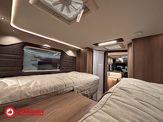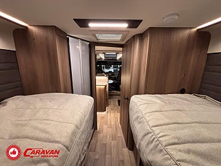 Modellår: 2026, Karosstyp: Halvintegrerad med taksäng, Värmesystem: ALDE - vattenburen centralvärme, Klädsel: Svart Skinn - Förarhytt Textil Tucson - Bodel, Försäkring: ca 9 000 kr/år, Automatisk växellåda (9 vxl), Centrallås bil- och bodelsdörrar, Instrumentpanel med silverdekor, ALDE - vattenburen centralvärme, Golvvärme - vattenburen i hytt, Värmeelement i hygienutrymmet, Värmeelement vid bodelsdörr, Krocksensor för gasol under färd, Stort kylskåp med separat frys, Taksäng ovanför sittgrupp - elektrisk, Extra bäddyna mellan långbäddar, Fönster med mörkläggning/myggnät, Färskvattentank - frysskyddad, Spillvattentank - frysskyddad, Bluetooth-anslutning till högtalare, Lastluckor - dubbla till garage, Lastutrymme - stort garage, Täthetsgaranti - från tillverkare, Klimatanläggning - bildel, Aluminiumutsida väggar och tak - dekaler med 3D-känsla, Bränsletank (diesel) 92 liter, DRL daytime running light, Elektrisk parkeringsbroms, ESP/ASR antisladd och antispinnsystem, Körfältscentrering - Lane departure varning, Mercedes-Benz ServiceCare Complete, IP-radio via KABE Smart D 2.0, MBUX (inklusive backkamera), Ecoprim-isolering i väggar, Led belysning halv- och helljus, 7-års täthetsgaranti