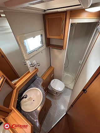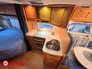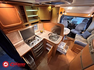 Modellår: 2006, Karosstyp: Halvintegrerad, Värmesystem: ALDE - vattenburen centralvärme, Klädsel: Textil - Blå/Grå, Försäkring: ca 5 000 kr/år, Instrumentpanel med trädekor, ALDE - vattenburen centralvärme, Klimatanläggning - bildel, Värmeelement i hygienutrymmet, Gasolugn med separat grill, Stort kylskåp med separat frys, Eluttag för TV-antenn/12V/230V - utvändigt, Fönster med mörkläggning/myggnät, Färskvattentank - frysskyddad, Spillvattentank - frysskyddad, Airvent
