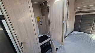 Tillverkningsår: 2021, Truma mover XT, Skick: Begagnad, Karosstyp: Enkelaxel, Planlösning: Dubbelbädd, Sovplatser: 4 bäddar, Totalvikt: 1900 kg, Tjänstevikt: 1 620 kg, Längd: 7.70 m, Bredd: 2.50 m, Reg.nr: NZD132, Golvvärme - vattenburen, Gasolspis 4 lågor, Gasolflaska, Sidokök, Kassettoalett, Bäddbar sittdel, Rundsoffa, Skofack, Batteri