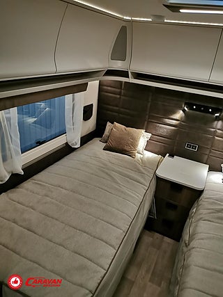 Modellår: 2026, Värmesystem: ALDE - vattenburen centralvärme, Klädsel: Textil - New Hawen, Försäkring: ca 5 500 kr/år, ALDE - vattenburen centralvärme, Värmeelement i hygienutrymmet, Gasoluttag i koffert med snabbfäste, Stort kylskåp med separat frys, Eluttag för TV-antenn/12V/230V - utvändigt, Färskvattentank - frysskyddad, Spillvattentank - frysskyddad, AUX-anslutning till högtalare, Bluetooth-anslutning till högtalare, Fönster med mörkläggning/myggnät, Isolering 36 mm med slutna celler, Elektrisk uppfällbar huvudända på säng