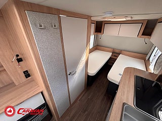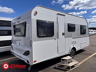 Modellår: 2026, Värmesystem: Truma - luftburen fläktvärme, Klädsel: Textil - COOL GREY, Försäkring: ca 3 000 kr/år, Truma - luftburen fläktvärme, Färskvattentank - frysskyddad, Fönster med mörkläggning/myggnät, Broms System (självjusterande broms, TV-förberedelse med uttag, Täthetsgaranti 10 år