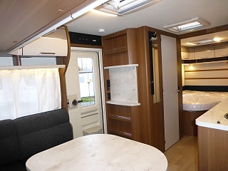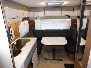Alde 3020 H2O centralvärme, Bred komfortbodörr m. fönster, färskvattentank Invändig 44L, XPS isolering i väggar golv & tak, LMC multifunktional rollo, paket 12V 75Ah fritidsbatteri, Kylskåp/frys Thetford smart tower 141L, Bäddmått sittgrupp 221 x 135 cm, dubbelbädd 200x 140/100 cm, Våningssäng 182x78cm / 186x80cm, Denna vagn är extrautrustad med Alde vinterpaket, detta är en stor rymlig husvagn för åretruntbruk med en innerlängd på 747cm för upp till 7 personer.