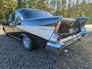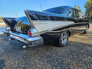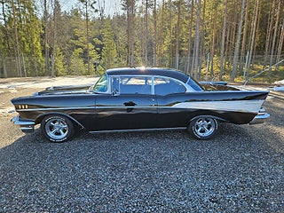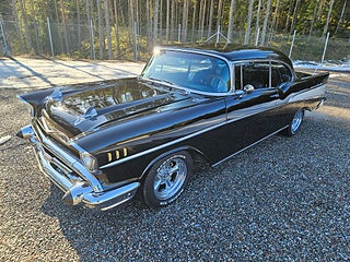 Bel Air -57 Sport Coupe i mycket trevligt skick samt med rätt stuk enligt oss, Ny Crate 350 motor som gått ca 300-400 mil samt en 4-stegs 700 aut, Dropspindlar fram med skivbromsar (original medföljer), Avtagbart drag, Retrostereo.
