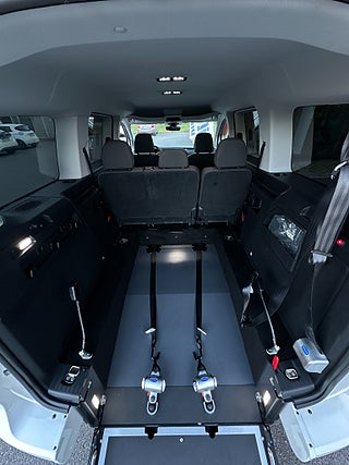 Den inbyggda rampen gör på- och avstigning enkel, och rullstolen säkras med godkända förankringar samt trepunktsbälte.