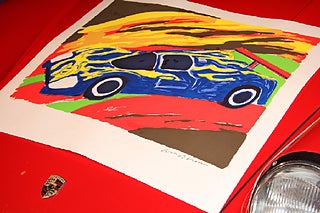 Bengt Lindström litografi handtryckt PORSCHE 962 Le Mans. Begränsad upplaga 1/300