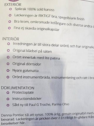 Bilen är genomgående fint skick och går mycket fint på vägen, relativt orörd bil som har fått modernare American racing fälgar som klär bilen bra.