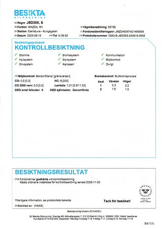 - Nyligen servad och besiktad