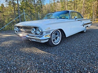 Impala -60 Sportcoupe i genomgående fint skick, Denna har dessutom en 348 V8 samt en 700 låda m lockup så det är en mycket åkvänlig bil som går fint på alla sätt, Snygga Kromhjul mm.