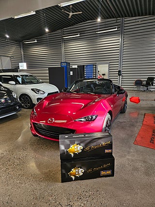 Denna Mazda MX-5 är specialbeställd med Homura paket, Brembobromsar, Recarostolar samt en av värden lättaste alu-fälgar från Japanska RAY är monterade original. bilen är utformad för att skapa körglädje med hjälp av precision, balans och prestanda, för en sann körupplevelse. Med förbättringar av chassi, säkerhet och tekniska funktioner tar MX-5 den nedcabbade körglädjen till nästa nivå levererat i en läcker stil.