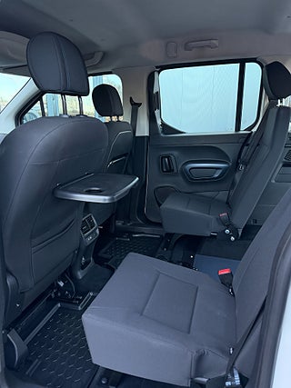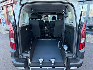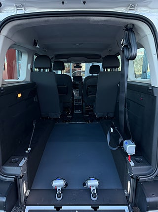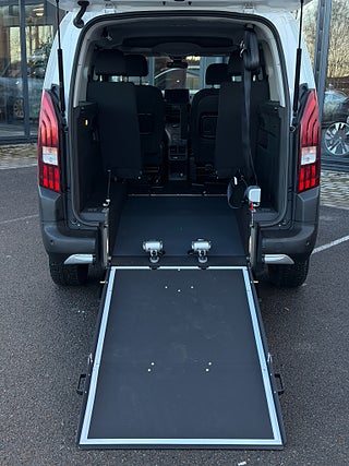Peugeot Rifter 1.5 BlueHDi EAT, 130hk, 2019 Lång modell, (Helt ny anpassning 2026) Handikappanpassad med manuell 2 delad ramp. Halkfri & lättviktsramp. 2x elektriska fästen fram samt 2 manuella avtagbara fästen bak för fastsättning av rullstol. 3 punkt bälte för rullstol. Person kan sitta kvar i sin rullstol under färd. Anpassad för passagerare i rullstol. 1 rullstolsplats för universellt bruk. Led belysning bak vid ramp. 2 säten på vardera sida i mitten raden. Plats för 5 personer varav 1 i rullstol. Extra utrymme för större permobil / rullstol.