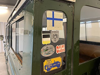 En levande ikon i ett originellt patinaskick, med en känd historik i Sverige. Svensksåld av 1970 års modell. 2,3liters bensin 70hk med 4 växlad låda. Original LR-ljusblå, nu i klassisk LR-grön i gammal sliten lack. Förrförra ägaren hade bilen 1987-2016. Senaste ägare haft bilen i snart 10 år.