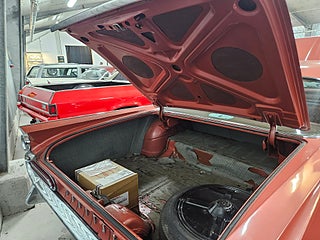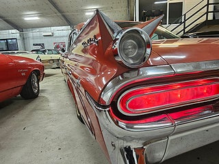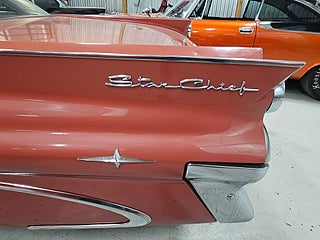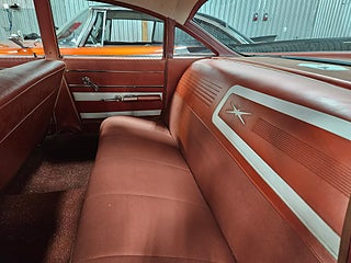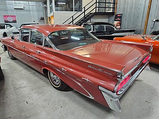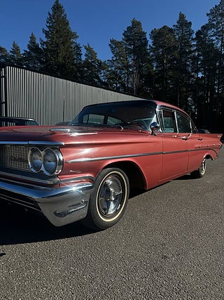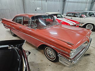 Unik -59 Pontiac StarChief som är som en tidskapsel, Denna bil har orginallack och inredning, Lacken har så klart vissa märken efter alla år men inte något som bör lackas om enligt oss och inredningen är mycket fin, Orginalnycklarna till bilen finns kvar och används fortfarande utan problem. 2019 köptes den av första ägaren och hamnade i Värmland där en trevlig o välrenommerad bilentusiast fixade nya däck och bytte värmepaketet och efter det hamnade den via oss hos den andra brukaren som bytte packningar och kamdrivning i motorn och körde sparsamt med den, vi tog återigen in bilen och sålde till den tredje brukaren som även han brukat den sparsamt och har monterat Stereo samt en tempmätare men allt utan åverkan på bilens orginalutförande. Denna bil är för den som söker en härlig oskruvad fenbil från femtiotalet som går som en dröm.