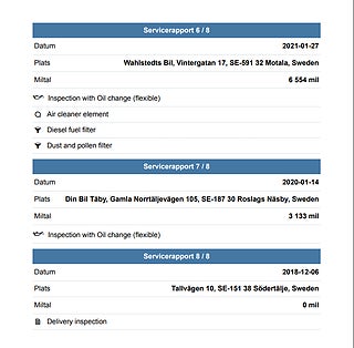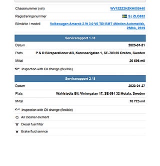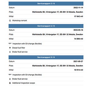 Fordonets historik - 11 händelser finns registrerade