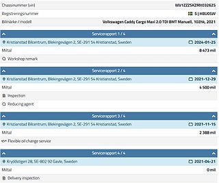 Fordonets historik - 7 händelser finns registrerade