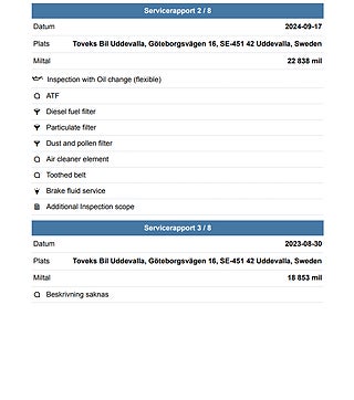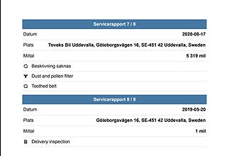 Fordonets historik - 11 händelser finns registrerade
