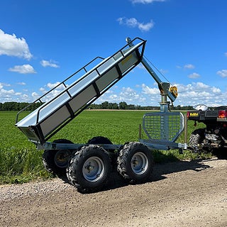 En perfekt tipp- och skogsvagn ATV som går att använda till gårdens alla sysslor. Vi har endas ett fåtal av denna vagn hemma. Så passa på att boka ditt exemplar redan i dag. För mer info kolla in våran hemsida.