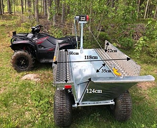 Helt ny viltvagn / kombivagn, som stått ute och fått lite patina. Utrustad med lastramp, påkörningsramp och vinschstolpe redo att ta ut på i skogen för att underlätta jakten.