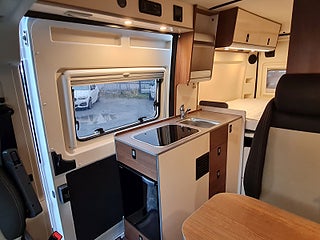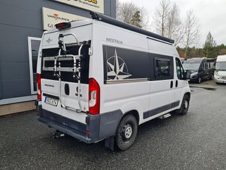 Planlösning: Smidig och flexibel planlösning med vändbara stolar och halvdinette. Mycket fräscht badrum helt i plast, med dusch möjlighet - med riktig dörr. Bra förvaringsutrymme under sängen bak, med plats för cykel på tvären. Westalia husbilar byggs med modern teknik, utan trä i konstruktionen och med överlägsen isolering.