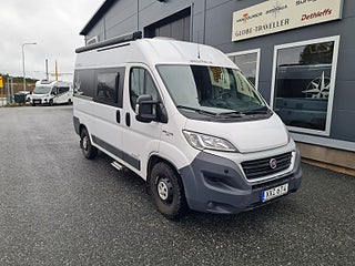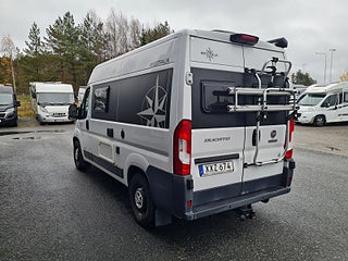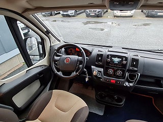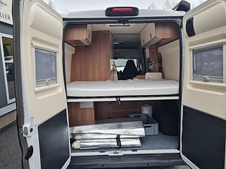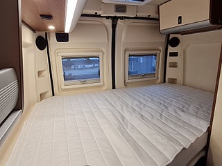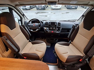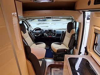 Tekniska data: Husbilen är av 2018 årsmodell, mätarställning 7700 mil. Fiat Ducato chassis, turbo diesel på 130 hk - Euro 6, automatlåda. Längd endast 5,40 m, totalvikt 3500 kg (B-kort), lastvikt c:a 353 kg, 4 bältesplatser, 2-3 sovplatser (tvärbädd bak, viss bäddmöjlighet fram) Reg nr XXZ674, skatt 6160 kr.