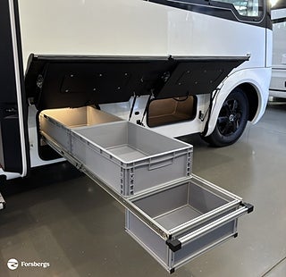 Inkommer omkring: 2026-06-12, Hjuldrift: Framhjulsdrift, Klädsel: Attraction / Grand Cru No. 16, Märke chassi: Mercedes-Benz Sprinter FL3A5 / AL-KO, Motor 125 KW/ 170 hk (endast i kombination med automatlåda 9G-Tronic, Automatisk växellåda 9G-Tronic, Spårviddsökning på framaxel (30 mm) (standard Sverige), Komfortstolar för förare och passagerare, med stolsvärme och svankstöd (endast i kombination med Liner Paketet, FKP - Färd Komfort Paket Automatisk luftkonditionering Thermotronic med pollenfilter i förarhytten, DISTRONIC aktiv avståndsassistans, 25" multimedia-system inkl. Navigation, Touchscreen och backkamera, Elektrisk parkeringsbroms, Ratt med funktionsknappar för radio, Laddpaket instrumentbräda med 2 USB-C-uttag (5V) och 1 extra 12 V-uttag, Förslutna förvaringsfack med fällmekanism integrerade i instrumentbrädan, Batterifrånskiljare för start, Isolerande jalusi för vindrutan - elstyrd och kan även användas som sol och insynsskydd, DISTRONIC aktiv avståndsassistans, Automatisk luftkonditionering, MBUX 10.25" multimediasystem med touchscreen och navigation samt backkamera, Elektrisk parkeringsbroms, trådlös laddning för smartphone, 16" lättmetallfälgar i svart, isolerande (elstyrd) jalusi för vindrutan (kan även användas som sol och insynsskydd), Panoramafönster (Midi Heki) ovanför sittgrupp, sidofönster i förarhytt med dubbelglas, Komfortstolar (SKA) för förare och passagerare, Intuitivt belysningskoncept (rörelse- och ljussensor för nattgolvbelysning samt automatisk belysning via bodel och garage via dörr- och klaffkontakter, batterifrånskiljare för startbatteri, laddpaket instrumentbräda med 2 USB-Cuttag (5V) och 1 extra 12 V-uttag, Backstarthjälp Hill holder, LED-varselljus och LED-baklyktor, integrerade LED sidomarkeringsljus, Aktiv däcktryckskontroll på fram- och bakaxel, Regnsensor och automatisk ljussensor, Aktiv filkörningsassistent, Attention Assist (trötthets- och mikrosömnsvarning), HOLD-funktion (förhindrar att fordonet rullar iväg), Förberedelse för Live Traffic Information, Kommunikationsmodul (LTE) för digitala tjänster, Mercedes-Benz nödanropssystem, AGM-batteri: 12 V / 92 Ah, Spårviddsökning på framaxel (30 mm), Panoramavindruta (limmad i nivå med karossen) av tonat och laminerat glas med grön ovandel, Sidohängda ytterbackspeglar vidvinkelfunktion, Värmekonvektorer med inkopplingsbar fläkt över hela vindrutans bredd, Förarhyttens komfortstolar vridbara 180°, Ytterbackspeglar med vidvinkelfunktion (uppvärmda och elektriskt ställbara), Komfortmadrass inkl. Froli sovsystem för bakre sovrummet, Yttersidor av vit brännlackerad aluminium, Karosserifogar med svart tätningsmedel, Front och stötfångare av kraftig glasfiberarmerad plast, Ytterväggar och garagelucka i vridstyv 2-sidig sandwichkonstruktion av aluminium (30 mm) med styrofoamisolering, Tak i vridstyv sandwichkonstruktion (30 mm) med styrofoamisolering (RTM-skum): aluminium invändigt: utsida av High Strength X-treme glasfiberarmerad plast med Takprofiler av aluminium för avledning av regnvattnet (minskar nedsmutsningen av husbilens sidor), Sammanfogning helt utan köldbryggor tack vare reglar av högdensitets-polyuretanskum, Karosskonstruktion helt utan trä, Bakvägg av 2-sidig aluminium samt ?ytterskal? av glasfiberarmerad plast, Högt uppdragna sidokjolar med isolerade lastluckor av bussmodell i sandwichkonstruktion (aluminium-styrofoamABS-plast) utan köldbryggor, Sandwichuppbyggda lastluckor av aluminium (aluminium på in och utsida) med styrofoamisolering, Förvaringsutrymme i dubbelgolvet åtkomligt via luckor på båda sidor, Färsk- och spillvattentankar frostsäkert och servicevänligt placerade i dubbelgolvet, Stort garage (ca 3 000 l) med invändig belysning och värmekonvektorer samt lastsäkringssystem med justerbara öglor och skena, Garagegolvet klätt med mycket slitstark beläggning, Massiv bodelsdörr med dubbellåsning och klädkrokar samt stuvfack, Utanpåliggande (elektriskt manövrerat) fotsteg med extra breda steg, Isolerande fönster med dubbla rutor av plast inkl. myggnät och plisserad mörkläggningsgardin (köldbryggsfri aluminiumkarm), Garagelucka på vänster sida, Slitstark och ljuddämpad golvbeläggning i trädesign, Helt plant golv med förarhytt och bodel i samma nivå, Taklucka med myggnät och plisserad mörkläggningsgardin vid sittgrupp och i sovrum, Mycket bekväma dynor tack vare uppbyggnaden med tre olika skumlager, Skjut- och fällbart bord i sittgruppen (skenor i golvet), TV-plats i skiljevägg vid bodelssittgrupp, Rymliga ovanskåp med Push-to-open-system (-gasfjädrar)- för bekväm öppning och stängning, Integrerad garderob vid fotändan av enkelsängarna och trappsteg med förvaringsutrymme vid fotändan av sängen, Fotsteg med nattbelysning vid bakre säng, Indirekt LED-belysning vid sittgrupp och i sovrum, Spotlights med Power-LED vid sängar och i samvarodelen, Bakre säng med bekväm kallskummadrass, Infälld hybridspis med gasspis med 2 x brännare (totalt 2.5 kW) och 1 x induktionsspis med 1.4 KW, Engreppsblandare med utdragbart munstycke, Skärbräda av trä vid diskbänk, Stora självstängande kökslådor, Elektrisk kökshylla med indirekt belysning och 230 V - uttag, 177 l absorber kylskåp inkl. 35 l frysfack inbyggt bakom en trädörr, Intelligent variobadkoncept med skjutvägg, Massiv skjutdörr mellan badrum och sovrum, Kassettoalett med rulltank, Handduksstång och krokar samt toalettpappershållare och toalettborste, Taklucka med myggnät och plisserad mörkläggningsgardin, Toastol i keramik på modeller med kassettoa, Centralt placerat (uppvärmt) servicefack på vänster sida, Avtappningskranar för färsk- och spillvatten med stor diameter (1 1 / 4") för bekväm tömning, Vattenanslutning med Gardena-koppling för enkel påfyllning av färskvattentanken, Rengöringsöppningar för båda tankarna åtkomliga inifrån bodelen, Integrerad 10 l varmvattenberedare, Ce