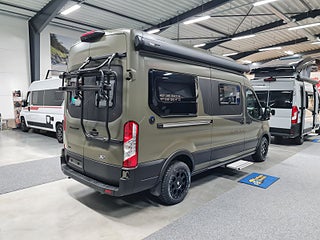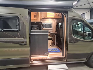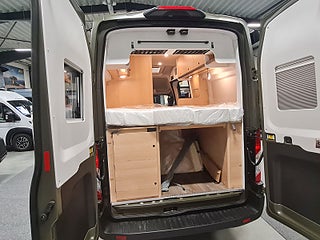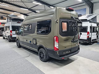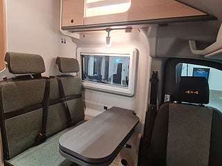 Tekniska data: Husbilen är helt fabriksny av 2026 årsmodell. Ford Transit chassis med 4x4 drivning, Turbodiesel på 165 hk – manuell låda. Längd 598 cm, totalvikt 3500 kg (B-kort), lastvikt c:a 450 kg, 4 bältesplatser, 3 sovplatser (säng på tvären bak + extra bäddning fram).