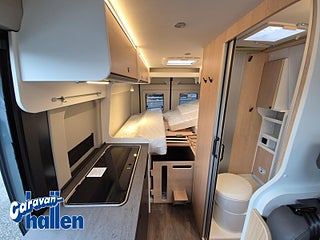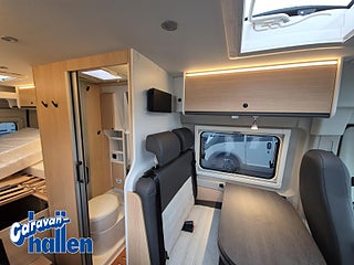 Modellår: 2026, Värmesystem: Truma - luftburen fläktvärme, Isofix till 2 sittplatser, Tygmörkläggning i förarhytt, Hyllor i dörrer i bak och i skjutdörr, Rymliga förvaringsutrymmen och avläggningsytor, Dinett-upphöjning med integrerad förvaringsutrymme Rymligt klädskåp, Säng i bak med delad ribbotten, Madrasser i hög kvalitet för ökad liggkomfort, Skiljevägg inkl. steg för att komma upp i dubbelsängen bak, Ergonomiskt utformade dynor för ökad sittkomfort, Rymligt förvaringsutrymme ovanför förarhytten, Överskåp hela vägen runt i bak, Chassipaket innehåller följande: Spegel elektrisk infällbar, Elektrisk parkeringsbroms, Digitalpaket innehåller följande, Induktiv laddningsfunktion för smartphone, 10" radio och navigationssystem (, Digital instrumentdisplay med 7-tums TFT-färgskärm, Backkamera inkl. dynamiska parkeringslinjer, Safetypaket innehåller följande, Bromsassistent med fotgängar- och cyklistigenkänning, Varningsystem för avåkning, Intelligent hastighetsassistent