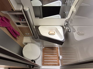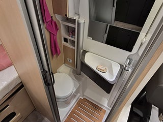 Planlösning: Smidig och flexibel planlösning med vändbara stolar och halvdinette. Smart badrum med flyttbar vägg, för bästa duschutrymme. Kylskåp i kökets högkant för bästa åtkomst. Bra förvaringsutrymme under sängen bak, bra utrymmen i skåp. Pop-up tak med belysning stege.