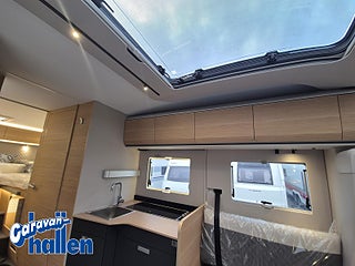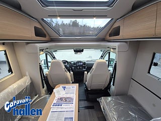 Modellår: 2026, Karosstyp: Halvintegrerad, Värmesystem: Truma - luftburen fläktvärme, Isolerad och uppvärmd spillvattentank, Zenec Multimedia 9-tum(inkl. backkamera), Panoramafönster i förarhytt, Bodelsdörr med fönster och myggnät, Mörkläggningsjalusi vid vindruta och sidorutor, Bodelsdörr med fönster & papperskorg, Krockvarningssystem med fotgängarskydd /Körfältscentrering, Mörkläggningsjalusi i vindruta & sidorutor hytt, Panoramafönster i förarhytt, Regn- och skymningssensor, Insteg förarhytt Totalvikter 3500/3800kg