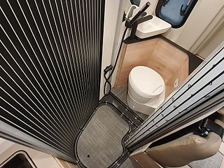 Planlösning: Smidig och flexibel planlösning med vändbara stolar och halvdinette. Praktiskt badrum med dusch möjlighet - med platsbesparande jalusi. Relativt stort kompressorkylskåp i kökets högkant. Bra förvaringsutrymme under sängen bak, med lastsäkring och praktisk utdragbar låda.