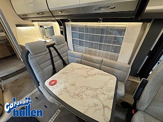 Modellår: 2024, Värmesystem: ALDE - vattenburen centralvärme, Alde vattenburen centralvärme, Läderklädd ratt och växelspaksknopp, 2 l / 132 kW / 180 hk) Heavy Duty, 9-växlad Wandler-automatlåda, ABS (låsningsfritt bromssystem), EBD (elektronisk bromskraftsfördelning), Automatisk bromsassistent efter en kollision, Hill Holder och Hill Descent Control, Sätesigenkänning för förare och främre passagerare, Trailer stabiliseringsprogram, Förarhyttspersienner för fram- och sidorutor för bästa isolering och insynsskydd, Instrumentbräda med aluminium applikation Läderratt och växelknopp i läder, Airbag förare & passagerare, Elektriskt justerbara & uppvärmda backspeglar, Mugghållare mitt på instrumentbrädan, Förstärkt framaxelfjädring, Dubbelgolv som delvis kan lastas i hela fordonsbredden, Bakre garage: 2 garageluckor med enhandsmanövrering, LED-lampa över hela bredden, 70 cm bred ingångsdörr med fönster och mörkläggning, Elektrisk stängningshjälp och gastrycksdämpare som hållöppningsanordning, Lifetime Plus konstruktionsteknik, Fuktsäker byggnadskonstruktion utan trä, XPS-isolering - med GFK-klädd undergolv och tak, Sovrumsfönster höger och vänster, Tillgång till boutrymme med bekväm kupé-insteg, Extra centrallås för serviceluckor, Elektriskt fotsteg Centrallås för förarhytt och ingångsdörr, tvåglas ramfönster med integrerade mörkläggnings- och myggnättrullgardiner (Privacy Black), Sky Roof (2 x panorama-taklucka 70x50 cm på tvären) över sittgrupp i bak, Dethleffs Exclusive bakljusramp med ShapeLine LED-bakljus, 3:e bromsljus integrerat i bakspoilern, Ombäddning i sittgrupp på tvären, Överskåpsluckor med Soft-close, Rund sittgrupp med fristående, styvt bordsunderrede och rund sätes- och ryggkudde med flexibelt nackstöd, Elektrisk taksäng i form av enkelsängar, Backkamera (enkelkamera) TV-hållare, LED-belysning i hela fordonet Duo Control inkl. Crashsensor, Dethleffs connect - System Control Unit Travel-paketet innhåller följande:Radioförberedelse med Sound-paket i förarhytt, Radioantenn DAB+ monterad på taket, Panorama-taklucka 75x105 cm, Light Moments: Indirekt belysning ovanför överskåpen, Elektrisk rullgardin/vindruta, Automatisk gastryckreglare Duo Control inkl. Crashsensor/EisEx och gasfilter, Backkamera
