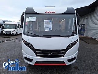Modellår: 2024, Värmesystem: ALDE - vattenburen centralvärme, Alde vattenburen centralvärme, Läderklädd ratt och växelspaksknopp, 2 l / 132 kW / 180 hk) Heavy Duty, 9-växlad Wandler-automatlåda, ABS (låsningsfritt bromssystem), EBD (elektronisk bromskraftsfördelning), Automatisk bromsassistent efter en kollision, Hill Holder och Hill Descent Control, Sätesigenkänning för förare och främre passagerare, Trailer stabiliseringsprogram, Förarhyttspersienner för fram- och sidorutor för bästa isolering och insynsskydd, Instrumentbräda med aluminium applikation Läderratt och växelknopp i läder, Airbag förare & passagerare, Elektriskt justerbara & uppvärmda backspeglar, Mugghållare mitt på instrumentbrädan, Förstärkt framaxelfjädring, Dubbelgolv som delvis kan lastas i hela fordonsbredden, Bakre garage: 2 garageluckor med enhandsmanövrering, LED-lampa över hela bredden, 70 cm bred ingångsdörr med fönster och mörkläggning, Elektrisk stängningshjälp och gastrycksdämpare som hållöppningsanordning, Lifetime Plus konstruktionsteknik, Fuktsäker byggnadskonstruktion utan trä, XPS-isolering - med GFK-klädd undergolv och tak, Sovrumsfönster höger och vänster, Tillgång till boutrymme med bekväm kupé-insteg, Extra centrallås för serviceluckor, Elektriskt fotsteg Centrallås för förarhytt och ingångsdörr, tvåglas ramfönster med integrerade mörkläggnings- och myggnättrullgardiner (Privacy Black), Sky Roof (2 x panorama-taklucka 70x50 cm på tvären) över sittgrupp i bak, Dethleffs Exclusive bakljusramp med ShapeLine LED-bakljus, 3:e bromsljus integrerat i bakspoilern, Ombäddning i sittgrupp på tvären, Överskåpsluckor med Soft-close, Rund sittgrupp med fristående, styvt bordsunderrede och rund sätes- och ryggkudde med flexibelt nackstöd, Elektrisk taksäng i form av enkelsängar, Backkamera (enkelkamera) TV-hållare, LED-belysning i hela fordonet Duo Control inkl. Crashsensor, Dethleffs connect - System Control Unit GT-paket innehåller följande:, Radioförberedelse med Sound-paket i förarhytt, Radioantenn DAB+ monterad på taket, Panorama-taklucka 75x105 cm, Light Moments: Indirekt belysning ovanför överskåpen, Elektrisk rullgardin/vindruta, Automatisk gastryckreglare Duo Control inkl. Crashsensor/EisEx och gasfilter, Centrallås för förarhytt/ingångsdörr och serviceluckor, Sidosolskydd som rullgardiner för förare och frampassagerare, Panorama-taklucka 70x50 cm i sovrum, Interiör GT inkl. utökat kök bakvägg, Utvändig design GT Advance (bakljusramp med svart diffusor/lackering I-front delvis svart/kylargrill med kromlister/skidplate "röd"), Aluminiumsfälgar Dethleffs, Hög karakteristisk Dethleffs Exclusive bakljusramp med ShapeLine LED-bakljus, 3:e bromsljus integrerat i bakspoilern