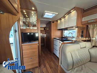Modellår: 2014, Motor: Fiat Ducato 3.0 liter, Värmesystem: ALDE - vattenburen centralvärme, Alde vattenburen cetralvärme, AC-bodel Truma Saphir Vario" golvmonterad, 2 ggr Lithiumbatterier 160 ah, Kamkedja