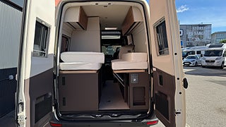 Vi presenterar Bürstner Habiton med Mercedes chassi och 4x4. En revolutionerande bil med skjutbart badrum och sittgrupp för att få till två långbäddar på en bil under 6m.