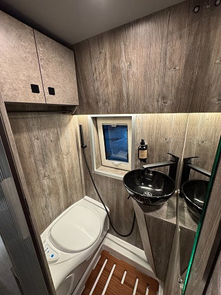 Denna husbil är utrustad med ett Off grid paket så det sitter ett 200ah lithiumbatter, 2000W inverter, smartladdare, mm.