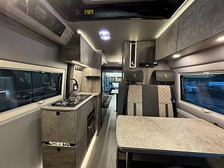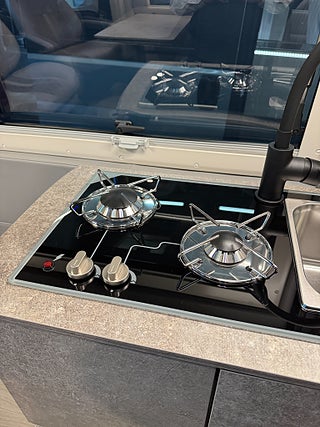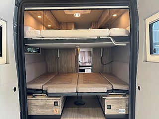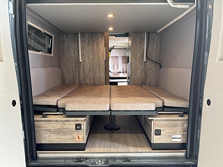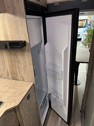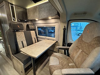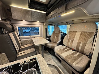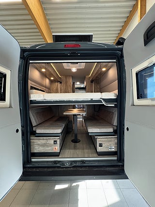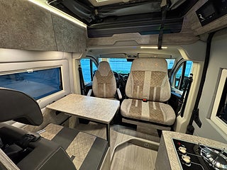 När man kliver in i denna husbil möts man av en design som inte är lik något annat! Den ger en modern och rustik känsla, hela bilen genomsyras av en äventyrskänsla! När man kliver in har man loungen med en skön soffa i snyggt och skön textil och tack vare dom svängbara stolarna har man gott om plats kring det skjutbara matbordet. Köket är välplanerat och här finns det flertalet djupa skåp och luckor så man får med sig allt man behöver. Kylskåpet är av den större modellen och har en utdragbar låda på sidan av köket, här finner man en stor kyl med frys, 2 lågig spis samt en ugn med grillfunktion. I bak finner man trumfkortet för Apollo Family, här har man en stor soffa som i en enkel handvändning görs om till en dubbelsäng. Det finns även en elektrisk nedsänkbar dubbelsäng. Utöver det finns det popup-tak med en dubbelsäng! Badrummet är rymligt och här har man även duschmöjligheter.