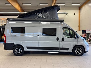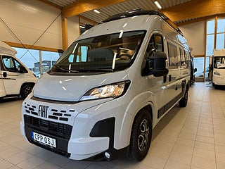 Denna rymliga bil är endast 599 cm lång och är byggd på ett Fiat-chassi med en 180HK motor och en 8-stegad automatlåda. Totalt finns det 5 bältade platser och 6 sovplatser!