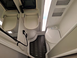 Värme/kyla: Westfalias nyaste variant av vattenburen dieseldriven värme, inklusive golvvärme. Klimatanläggning i hytten