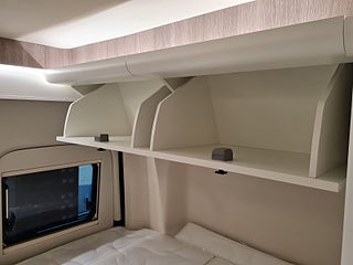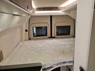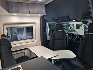 Planlösning: Smidig och flexibel planlösning med vändbara stolar och halvdinette, fantastisk luftkänsla i hytten. Bra sittbänk med extra komfort, bord med extra skiva under. Klassisk kök med fina lådor på passagerarsidan med stort kompressorkyl. Säng på tvären bak med bra förvaring under. Fräsch badrum med dusch möjlighet – med fantastiska detaljer och smakfull belysning. Allting snyggt och exklusivt utfört.