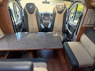 Bilen byggs på en fiat Ducato och delar även dess populära 2,3L 130HK dieselmotor kopplad till den 6-växlade manuella växellåda. Med en totalvikt på 3850kg får denna bil framföras på B-körkort som är utgivna innan 1996. Tack vare en god planlösning finns möjlighet till 4 bältade platser, och två långbäddar i bak med en mellandel för exempelvis mindre barn. Dem gemensamma utrymmen fylls av en 3 lågig Gasolspis, Kasett toalett samt Duschkabin, TV, samt gott om förvaring för den längre semester. Fordonet är även utrustat med Klimatanläggning i bildelen, Truma värme med elpatron, Kyl med seperat frys, 230V elpatron, Köksfläkt, Kaptenstolar i fram, läderklädda stolar samt sittutrymmen, myggnätsdörr, Färskvattentank. För förare och passagerare i fram finns givetvis airbags, Farthållare samt utbytt mediaskärm som även har backkamera. Objekt säljes med samtlig tillhörande utrustning likt gasolflaskor, campingstolar samt det enkla bestick/ artiklar som kan behövas i en sådan bil.