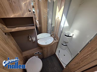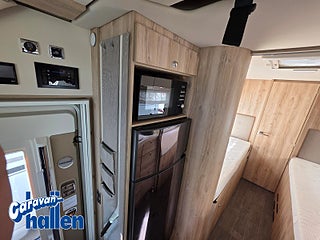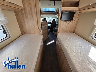 Modellår: 2018, Karosstyp: Halvintegrerad med taksäng, Värmesystem: ALDE - vattenburen centralvärme, Alde vatteburen centralvärme, Fläkt Fiamma Turbo-Vent i sovdel, Centrallås även bodelsdörr, Solpanel