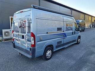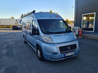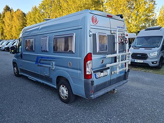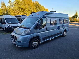 Tekniska data: Husbilen är av 2011 årsmodell, mätarställning 11900 mil. Fiat Ducato, turbo diesel på 120 hk, manuell. Längd 5,99 m, totalvikt 3300 kg (B-kort), lastvikt 450 kg, 4 bältesplatser, 2 sovplatser (2 tvärbäddar bak). Reg nr DSY727. Skatt 6942 kr