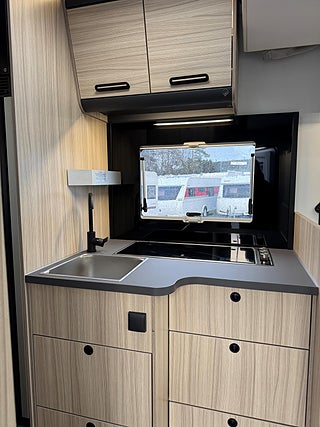 Modellår: 2026, Karosstyp: Halvintegrerad med taksäng, Truma - luftburen fläktvärme, Stort kylskåp med separat frys, Extra bäddyna mellan långbäddar, Fönster med mörkläggning/myggnät, Färskvattentank - frysskyddad, Spillvattentank - frysskyddad, Täthetsgaranti - från tillverkare, Lastluckor - dubbla till garage, Lastutrymme - stort garage, Multimediaspelare med Backkamera och Navigation, Klimatanläggning - bildel, Valbar totalvikt: 3.500kg/4.100kg