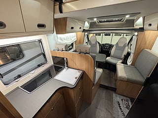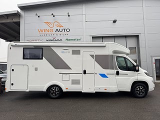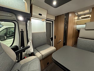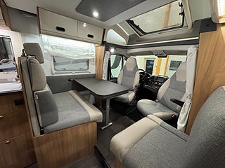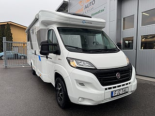 Denna husbil är byggt på ett Fiat-chassi med en 140HK motor och man behöver endast vanligt B-kort för att framföra denna skönhet på vägarna då totalvikten är 3500kg!